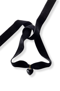 Heart Shaped Black Onyx, Velvet Band and 18K solid yellow Gold